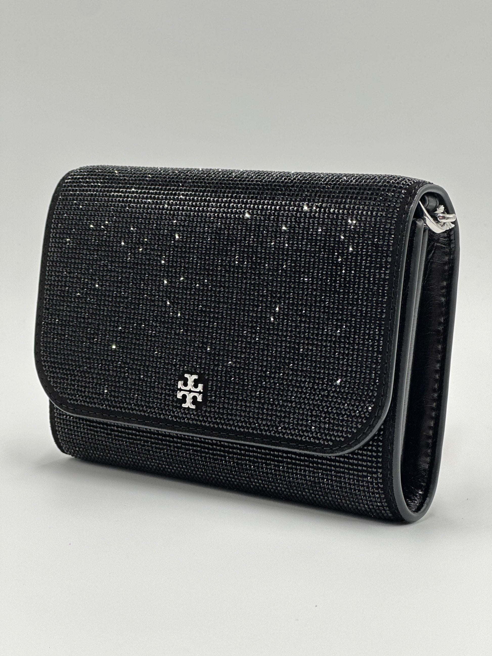 Bolso Crossbody negro de brillos Cadena plateada